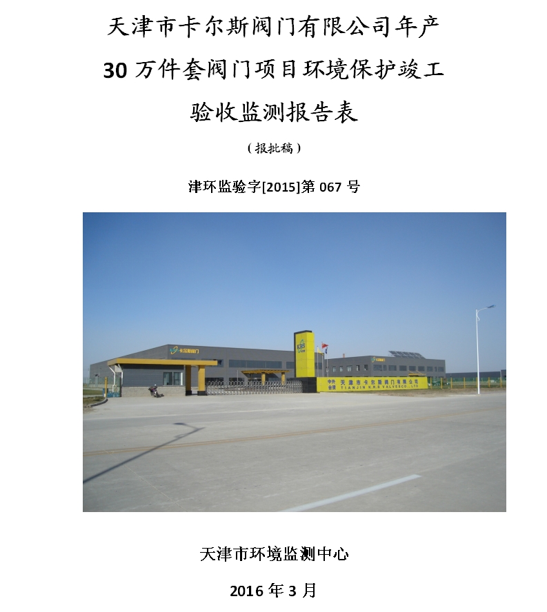 天津市卡爾斯閥門有限公司環境保護竣工驗收公示